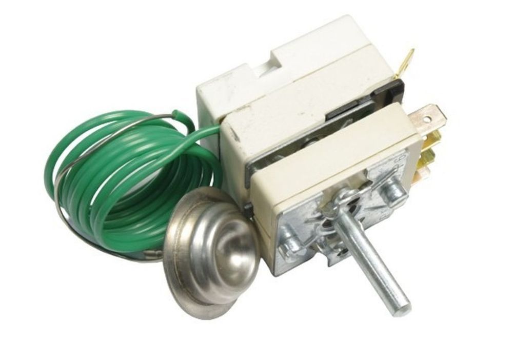Чтобы заменить термостат, отсоедините его крепление, снимите и вытащите трубку. Затем заведите в отверстие трубку нового устройства, закрепите его на месте и обратно подсоедините клеммы (полярность не имеет значения).