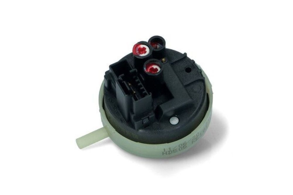 Это датчик уровня воды. Если он заклинил в положении максимум или его контакты подгорели и не работают, а также при засорении трубки, соединяющей его с баком, стиральная машинка не будет запускаться. В моделях Indesit при этом будут мигать все индикаторные светодиоды. Проверить его исправность можно самостоятельно.