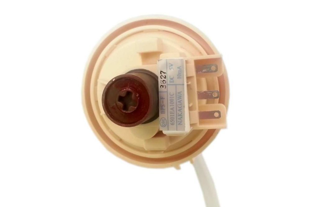 Для контроля поступления в барабан определенного объема воды (зависит от выбранной программы стирки) в конструкции предусмотрен специальный датчик — прессостат. Его функция заключается в отправке сигнала в электронный модуль управления в тот момент, когда уровень набранной воды достигает установленного значения. При неисправности этого элемента набор воды может быть нарушен или блокирован.