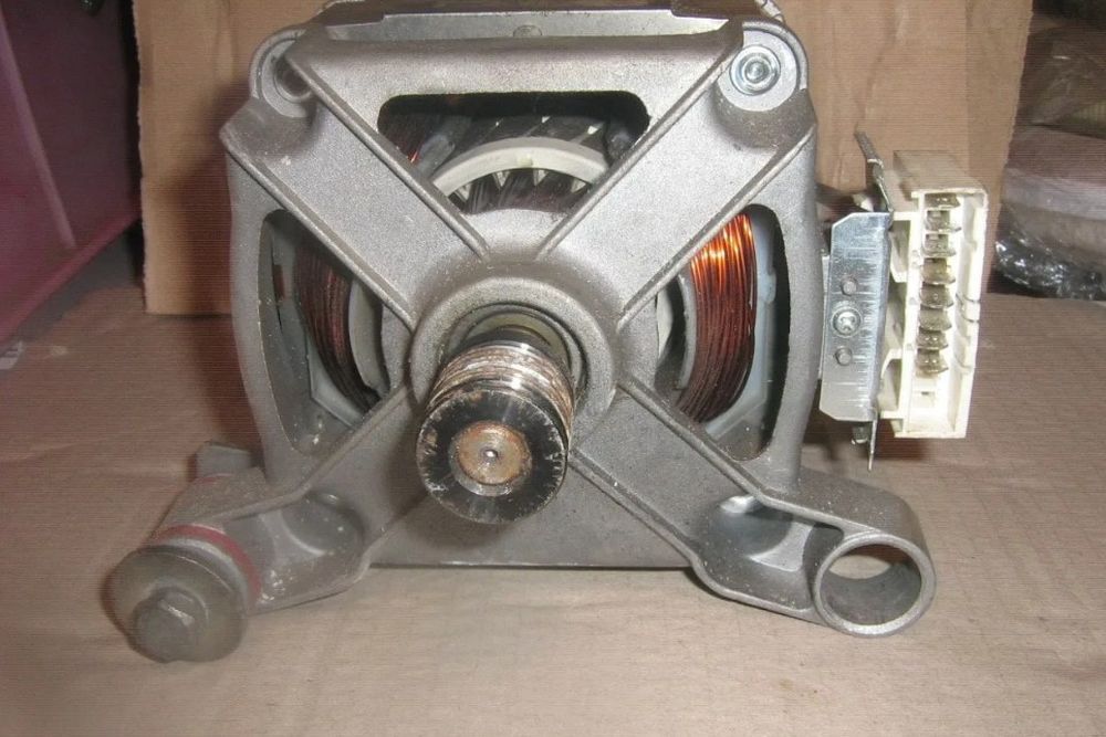Поломка электродвигателя – следствие износа или повреждения щеток, обрыва или замыкания обмотки, неисправности тахогенератора. На работоспособность мотора негативно влияет попадание влаги, регулярная перегрузка бельем, скачки напряжения и старение компонентов модуля управления.