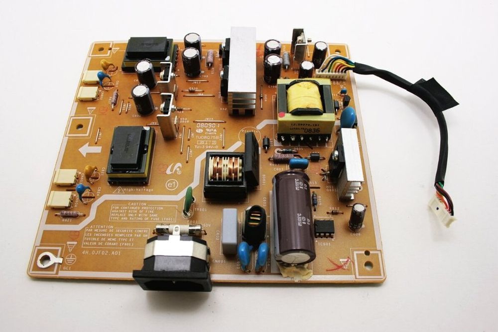 Блок питания тоже отвечает за преобразование входного тока, защиту ТВ и его компонентов от скачков в электросети. «Страдает» устройство от того, от чего и защищает – перепадов напряжения, короткого замыкания.